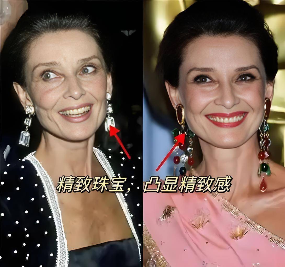 配饰在干瘦身材的造型中尤为重要,它们能增加视觉分量感,提升整体精致度。像张曼玉、赫本就大胆选择稍大、有设计感的耳环,气场立刻开挂;